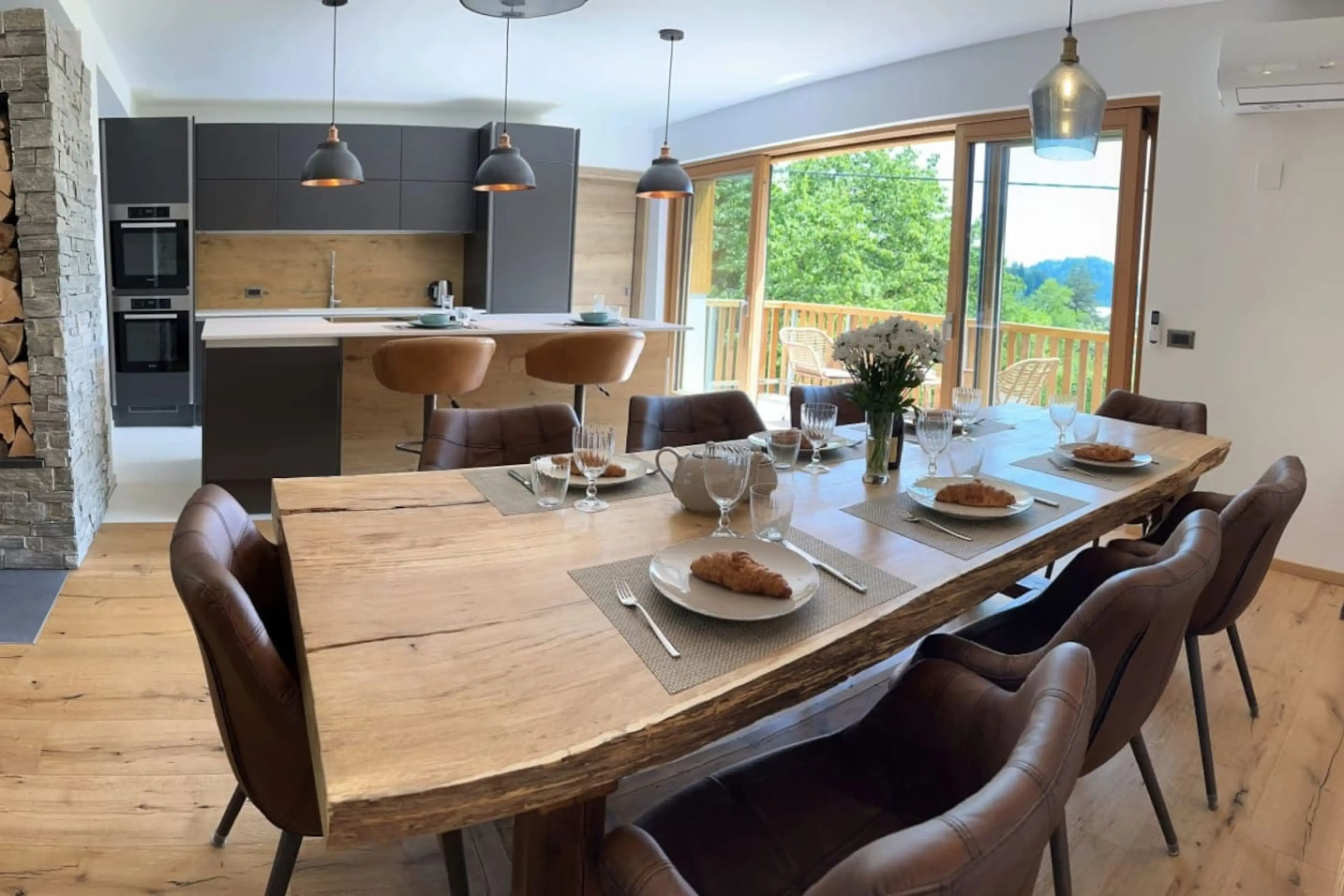 Escape to The Villa Bled, a luxurious alpine retreat on the edge of a tranquil forest. 5 bedrooms with private bathrooms and balconies accommodate up to 12 guests. Two fully equipped kitchens for culinary delights. Relax on the terrace, enjoy two spacious living rooms. Unwind in the private garden w...